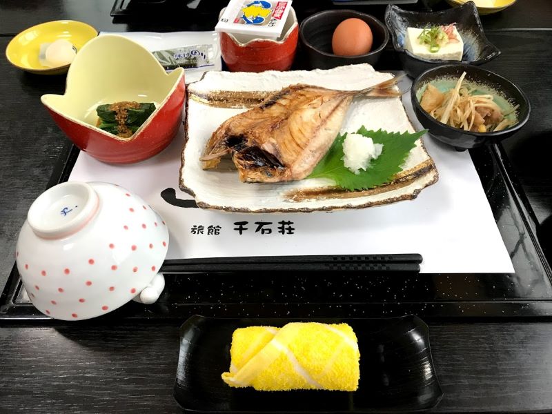 橋の上から夕暮れの港の風景を撮影して、今夜の宿である湯ノ本温泉の旅館『千石荘』に向かう。今回の宿探しは私の担当。私はじゃらん派だ。旅が決まるとじゃらんのサイトとにらめっこの日々が続く。価格、立地、部屋、風呂、食事…あらゆることを調べて悩み迷う。素泊まりで外ご飯を楽しむか、宿でじっくりと食べるかといったことでも悩む。考えてみると時間と労力の無駄遣いなのでさっさと決めれば良いのだが、旅のシミュレーションを楽しんでいるといえるかもしれない。サイト内を行ったり来たりして決められずにいると、パートナーがスマホに一軒の宿のサイトを転送してきた。煮詰まっていた私はそのアイデアに乗っかることにした。それが旅館『千石荘』だった。